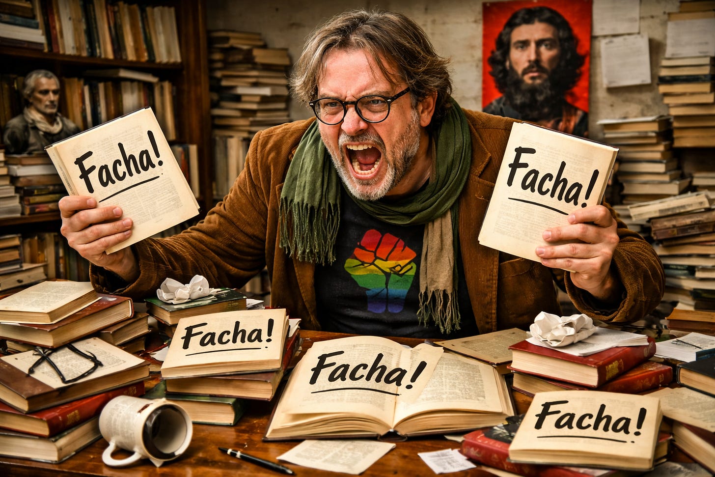 Los amigos progresores que me escriben correos trastornados para mandarme un «facha» con su afecto embustero y con una deleznable semántica escarlata es porque solo manejan diccionarios de una página que muestra en el epicentro de su blanco lactescente, en una discreta ínsula para leer, las cinco letras empresas, ¡que más no tiene, ay, ni las quiere tener!